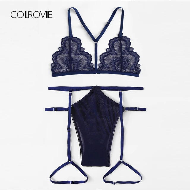 Cheap COLROVIE כהה תחרה ורשת בירית הלבשה תחתונה סט 2018 חדש קיץ סקסי חזיית סט תחרה מקורבי שקוף חזייה ותחתונים סט