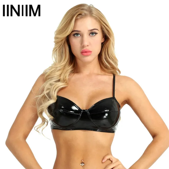 Iiniim נשים הלבשה תחתונה מקורבי אופנה Wetlook פו עור חוט-משלוח אין כרית חזייה למעלה לשבחים ריקודים סקסי Clubwear עבור גבירותיי