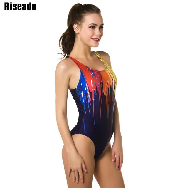 Riseado 한 Piece Swimsuit 2019 Sport Women's Swimming 한 벌 페인트 Printing 수영복 Women 레이서 백 Bathing 한 벌 비치웨어